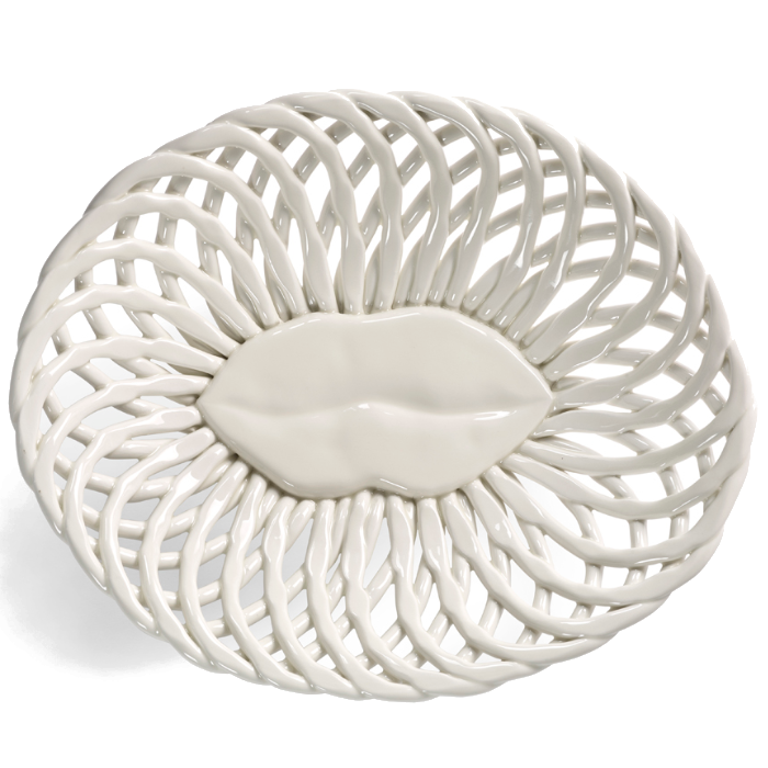 The open ceramic weave forms an airy, sculptural structure, while the base reveals voluptuous lips, a playful homage to Salvador Dalí, the great surrealist whose dreamlike forms continue to inspire design today.
