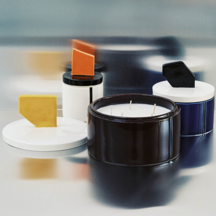 La bougie parfumée Candela 02 (moyenne) incarne l’univers graphique et audacieux de Plan C, la marque de Carolina Castiglioni, en collaboration avec Serax.